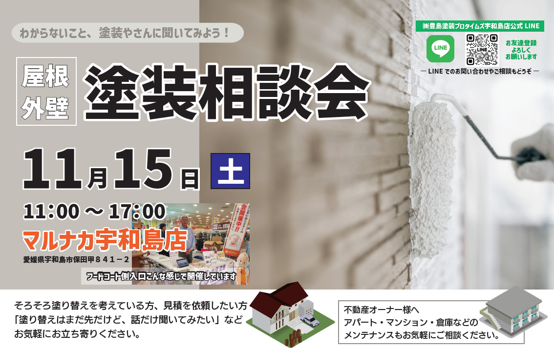 【11月15日(土)マルナカ宇和島店】住宅の塗装相談会のお知らせ