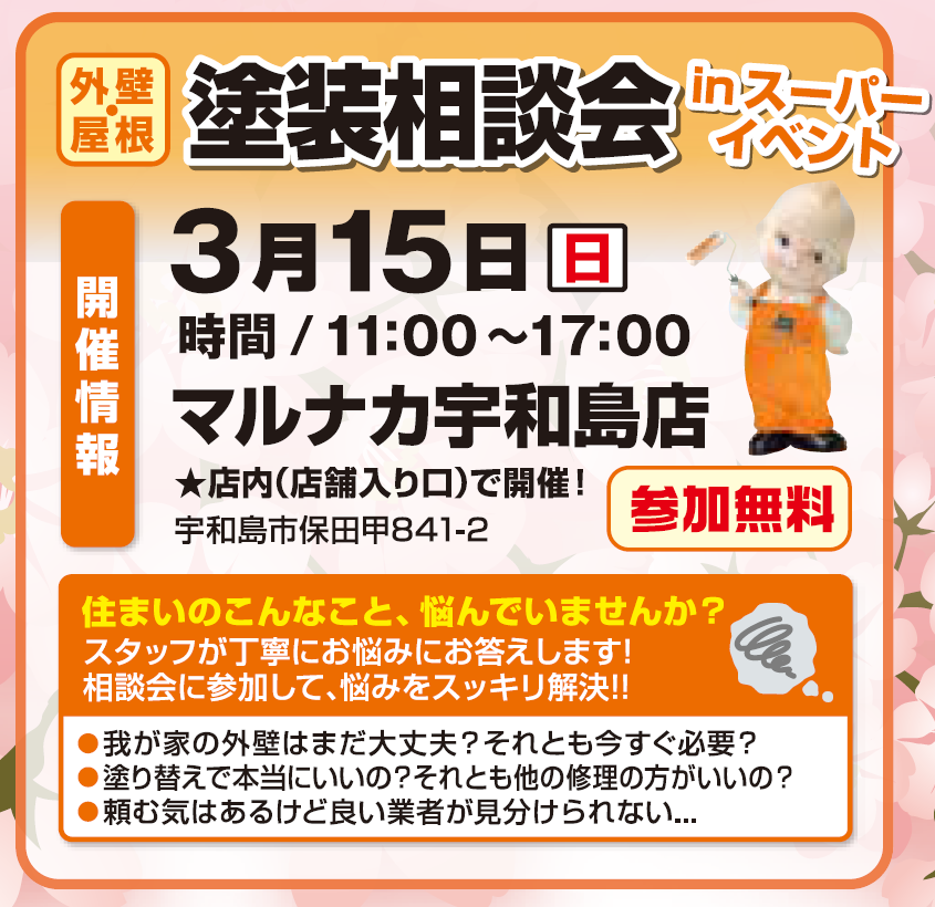 【3月15日(日)マルナカ宇和島店】住宅の塗装相談会のお知らせ