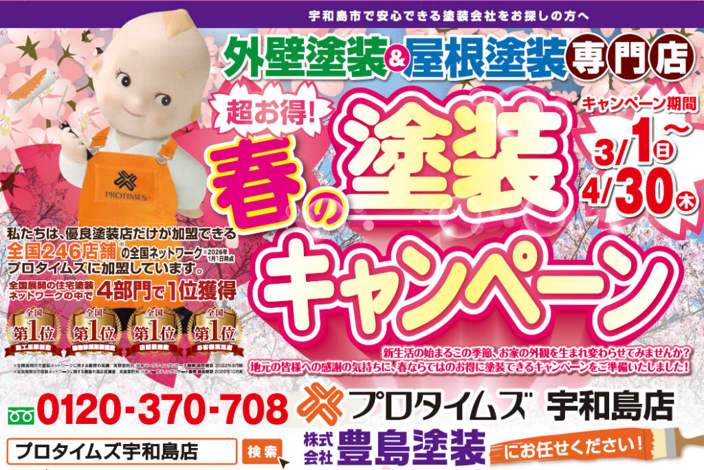 こんにちは!株式会社豊島塗装プロタイムズ宇和島店の豊島です。