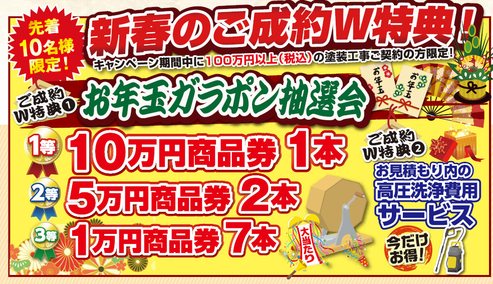※ご成約特典はキャンペーン期間中、100万円以上(税込)の塗装工事をご契約の方限定です